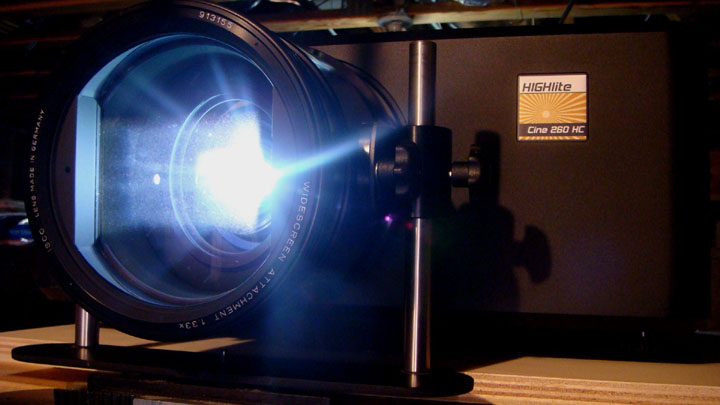 In contrast, the 5E1 uses a new design with a "5th optical element" (lens) inside the case, as compared to other ground glass anamorphics which have 4 elements (2 doublets making). The 5E1's front and rear elements (also doublets) do not move, only the internal, 5th element. It is adjusted via a knob that sticks out on the rear of the housing. The knob is easy to turn with one finger. I have expressed concerns that it may not be stiff enough to hold it's position long term but I was told the production units are substantially tighter, this pre-production unit has undergone extensive, multiple lifetime focus testing and that knob was naturally a little looser from same. It moves the inner element in a very small increments which is great for fine tuning, but has the downside of taking a lot of turns to move the lens stop to stop. As this is a one time thing, not a big deal in either case as long as it stays put. I will say that I was not crazy about the rear knob as tested, and the designer knows it, but the tradeoff of having the very expensive cam adjustment like the Isco was the reason given for this design. I understand my knob concerns have already been addressed. The knob sticks out from the rear of the lens substantially (about 0.5” or 12mm) on my pre-production piece, and I was concerned about bumping my prime lens during adjustments. You will need to be careful with this knob when setting up. To help with my concerns, the designer says the lens may be mounted farther away from the prime without issue, just be aware of the knob in any case. It's not on the front of the lens because the front is maximized for glass exit size to accommodate wider throws. Good call. http://www.techht.com/XEIT/5Efosusknob-sm.jpg The 5E1's moving lens element travels on a precision linear bearing, I see no issue with that. On my sample, the knob moved the element without any play or backlash evident. Very nice. As I understand it, the production lenses will start coming with a cosmetic detail that hides the end of the linear bearing from front view, which is not a big deal but would be more icing on the cake. Size: Case design: The 5E1 is interesting in that its internal element is rectangularly masked via its housing, a feature only seen on Schneider's $15,500 Premier and Cinema DLP lenses. That comes with the advantage of rejecting stray light spill out of the projector when in the light path. http://www.techht.com/XEIT/intolens-sm.jpg As compared to other alternative lenses the 5E1, like the Isco, is sealed. No place for dust or contaminants to enter the lens internals. While I did not disassemble it for obvious reasons, I understand the 5E1 is 0-ring sealed. Cleaning a ground glass